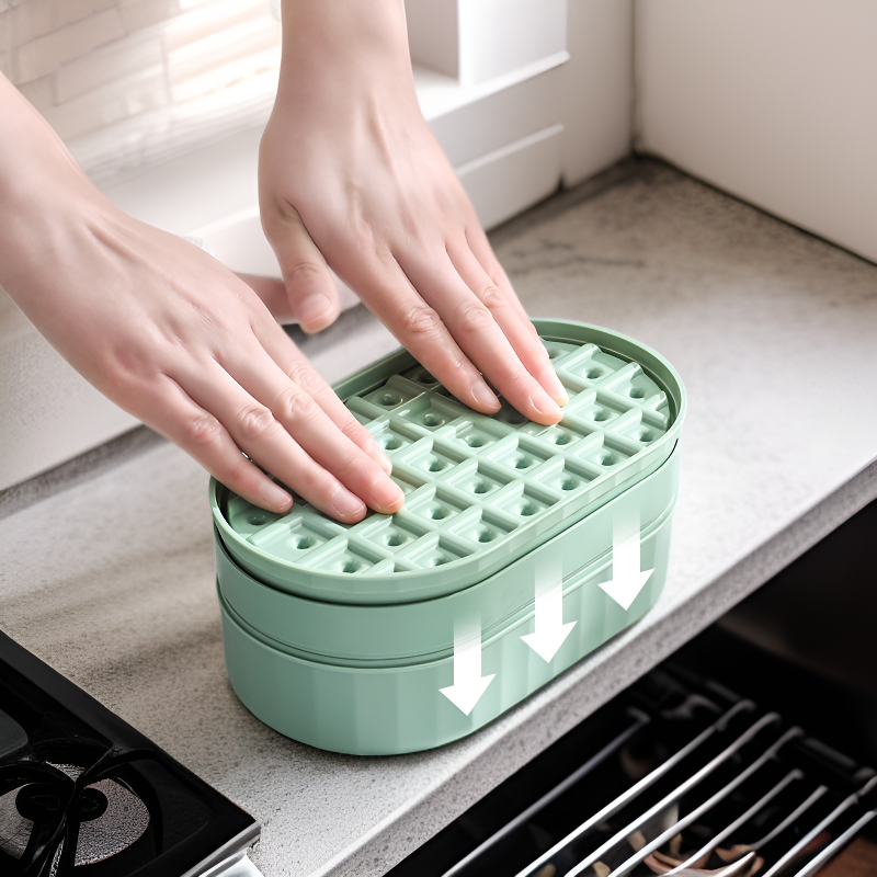 押し出しボタン付きシリコンアイスメーカー・ストレージボックス付き